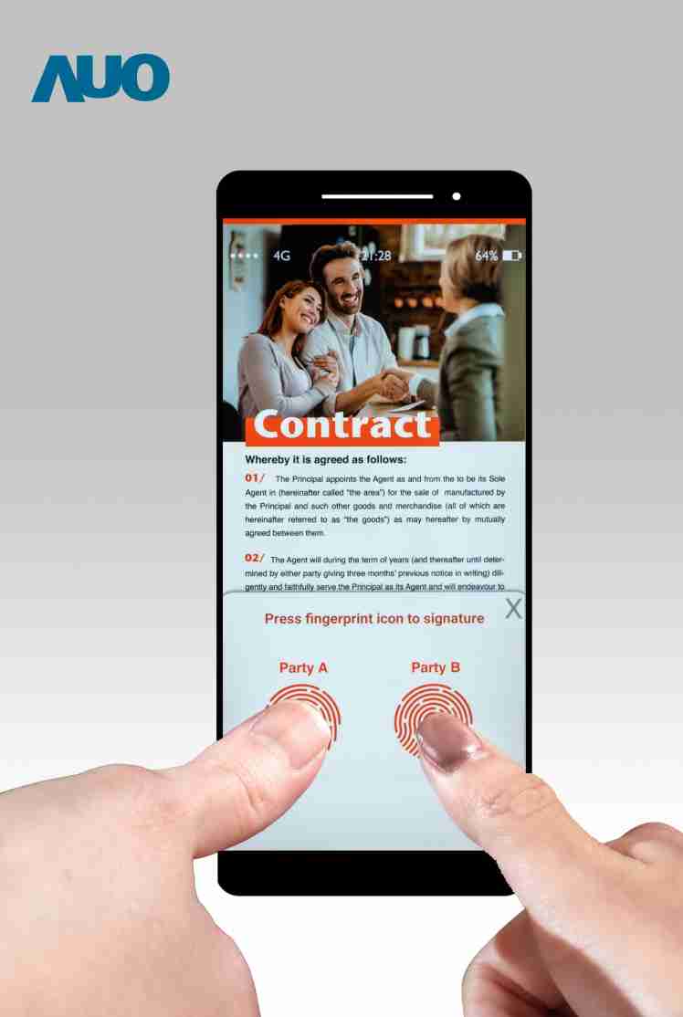 尊龙集团结合指纹辨识、、、、触控、、显示的三合一 LCD 面板提供 50 毫米x 50 毫米的大感测面积,,多指指纹辨识特别适用金融交易,,,,大幅提升安全性。。。