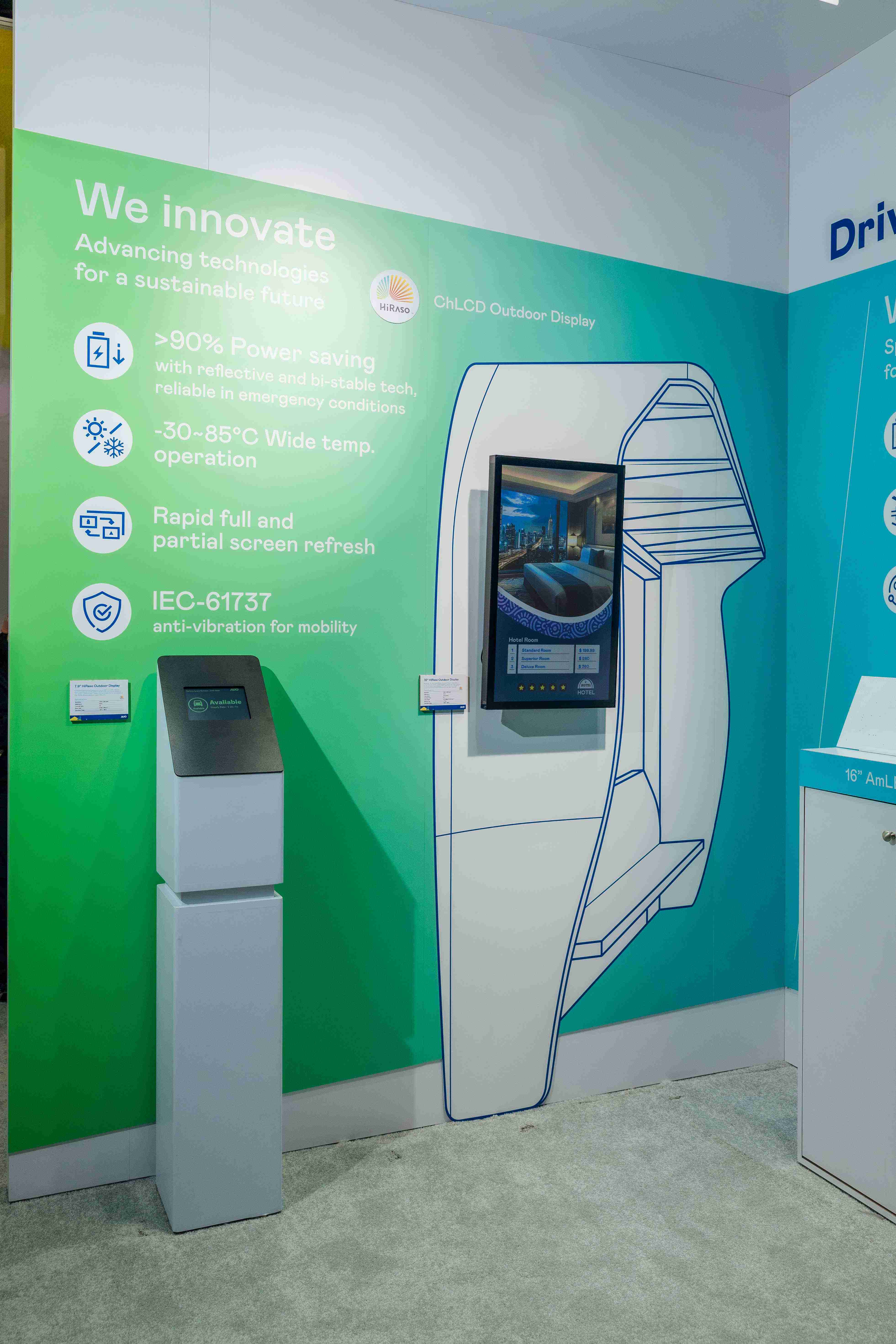 HiRaso胆固醇液晶显示器运用反射环境光线的方式,,呈现影像显示时零耗能的环保省电诉求,,,光线愈强愈能呈现绝佳的色彩饱和度及显示效果,,,同时在摄氏-30度至85度间宽温的使用优势,,为户外电子看板的新首选。。。。
