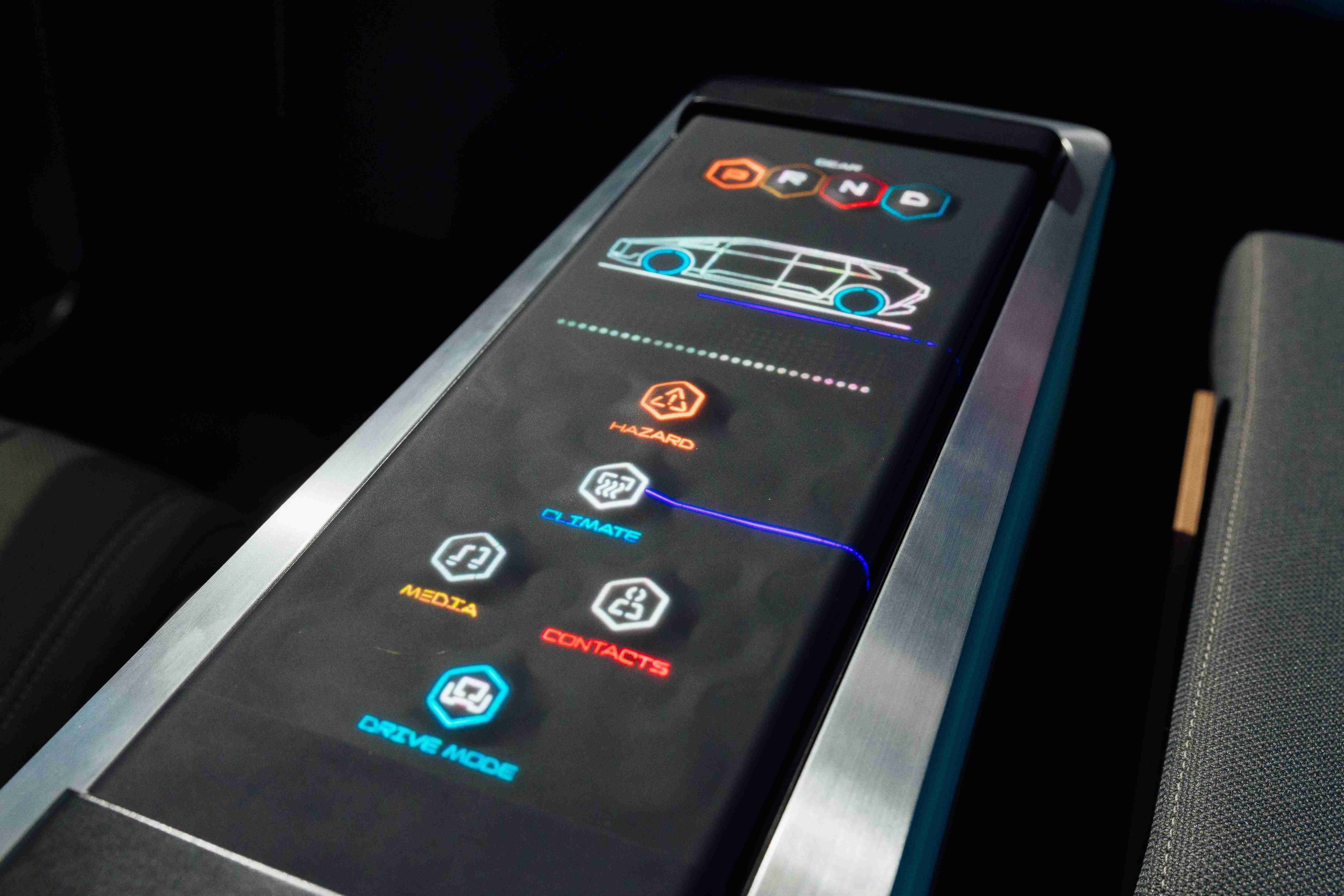 多变形态中控显示(Morphing Center Control)拥有动态变化的表面,,,,平时常态显示车辆功能,,进一步操作时,,,则会隆起成为3D 按钮,,并在触控时以震动回馈,,以精细的操作开创人机互动新境界。。。 ![]()