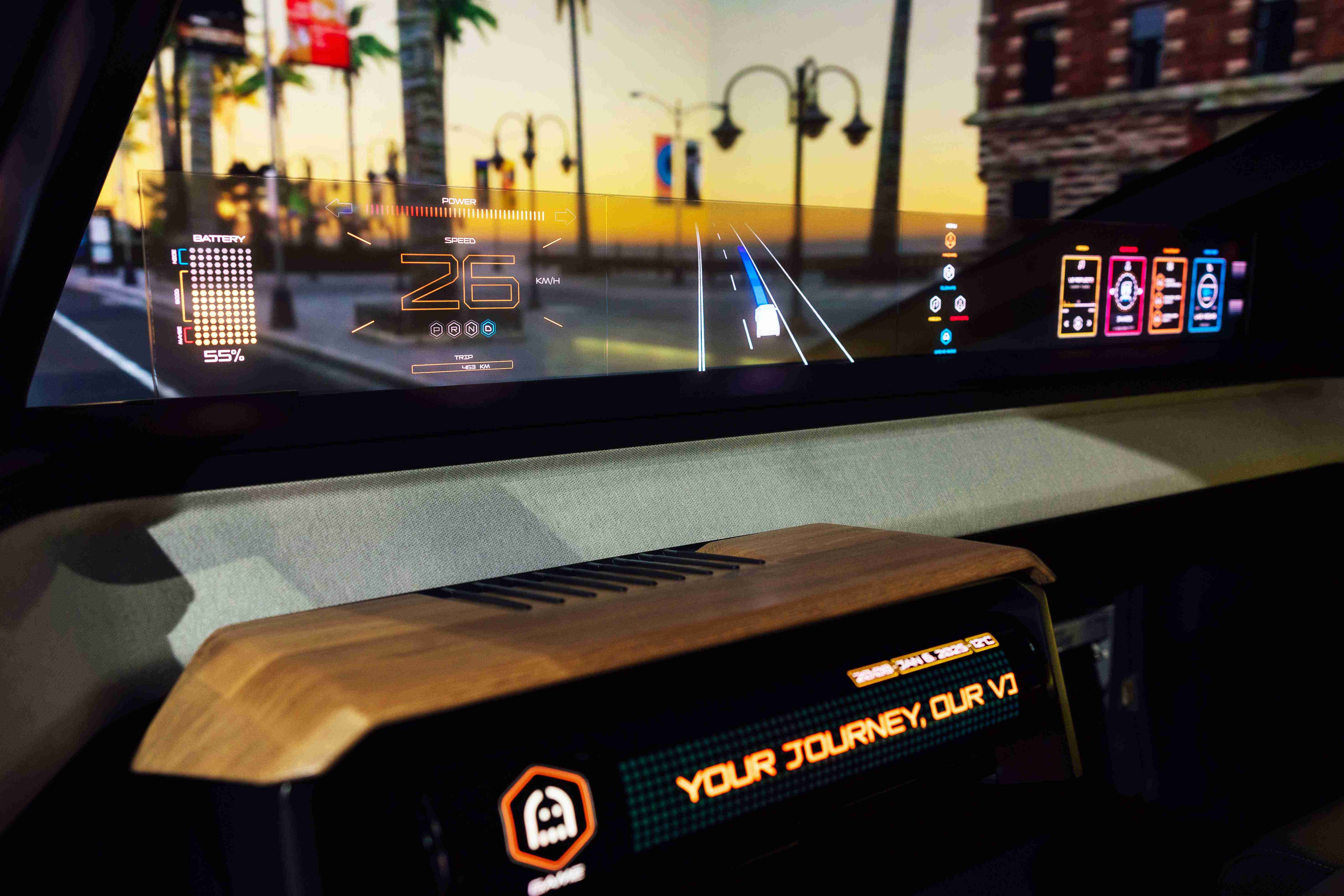 隐藏式智驾介面(Foldable Cruise Pilot)在不同模式下可以切换显示方式,,,,在手动驾驶模式时,,,显示器可以在半收合状态下,,仍呈现所需资讯;自驾模式时,,显示器可以完全展开,,,,满足不同的多媒体娱乐需求。。。。 尊龙集团Smart Cockpit 2025 在车头及车尾搭载合作伙伴Ennostar开发的互动式矩阵显示器(Interactive Matrix Display),,其突破传设计框架,,利用优化的光源整合技术,,,提供更高亮度与对比度的显示效果,,营造驾车者个性化风格并传递讯息。。。